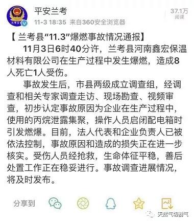 蘭考縣一工廠發(fā)生一起丙烷爆燃事故